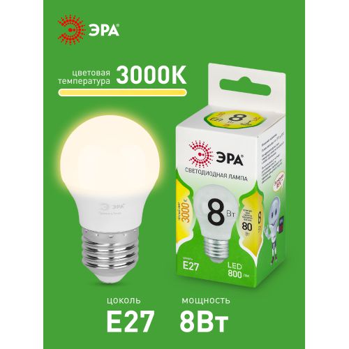 Светодиодная лампа ЭРА LED P45-8W-830-E27 GL серии Green Line — компактный и энергоэффективный источник света. Лампочка мощностью 8 Вт с цоколем E27 излучает теплый белый свет (3000K), создавая комфортное и равномерное освещение. Высота лампы: 80 мм. Форма P45 (шар) и небольшой размер делают её отличным выбором для настольных ламп, бра, торшеров и декоративных светильников. Отличается низким энергопотреблением, долгим сроком службы и устойчивостью к перепадам напряжения. Работает от сети 220 В, эквивалентна 80 Вт лампе накаливания. Обеспечивает стабильное свечение без мерцания, идеально подходит для дома, гостиниц, кафе и коммерческих помещений.