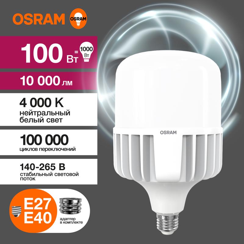 Лампа светодиодная HW 100Вт T матовая 4000К нейтр. бел. E27/E40 10000лм угол пучка 200град. 140-265В PF>/=0.9 алюм. (замена 1000Вт) OSRAM 4099854121722