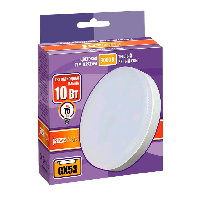 Лампа светодиодная PLED-GX53 10Вт таблетка матовая 3000К тепл. бел. GX53 800лм 230В JazzWay 1029072