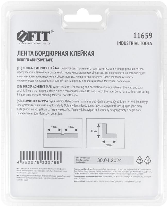 Лента бордюрная клейкая FIT IT предназначена для герметизации и декорирования стыков между стеной и ванной или раковиной. Клеевой слой с высокой степенью адгезии обеспечивает легкий монтаж ленты. Благодаря полимерной основе лента не подвержена воздействию плесени и грибка. Не имеет запаха.