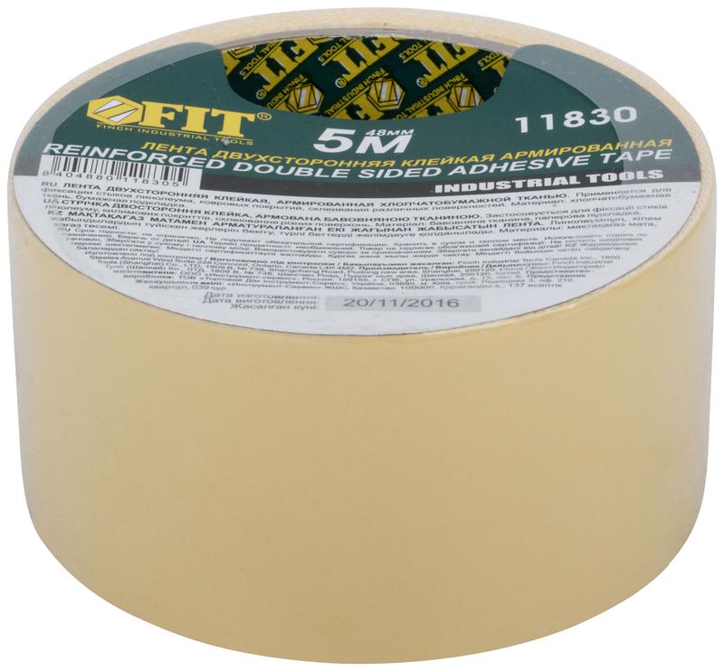 Двусторонняя армированная тканью клейкая лента FIT IT применяется для фиксации стыков линолеума, ковровых покрытий, склеивания различных поверхностей. Лента обладает высокой прочностью на разрыв и низким коэффициентом удлинения. Может использоваться на шероховатых поверхностях. Не требует особых условий хранения.