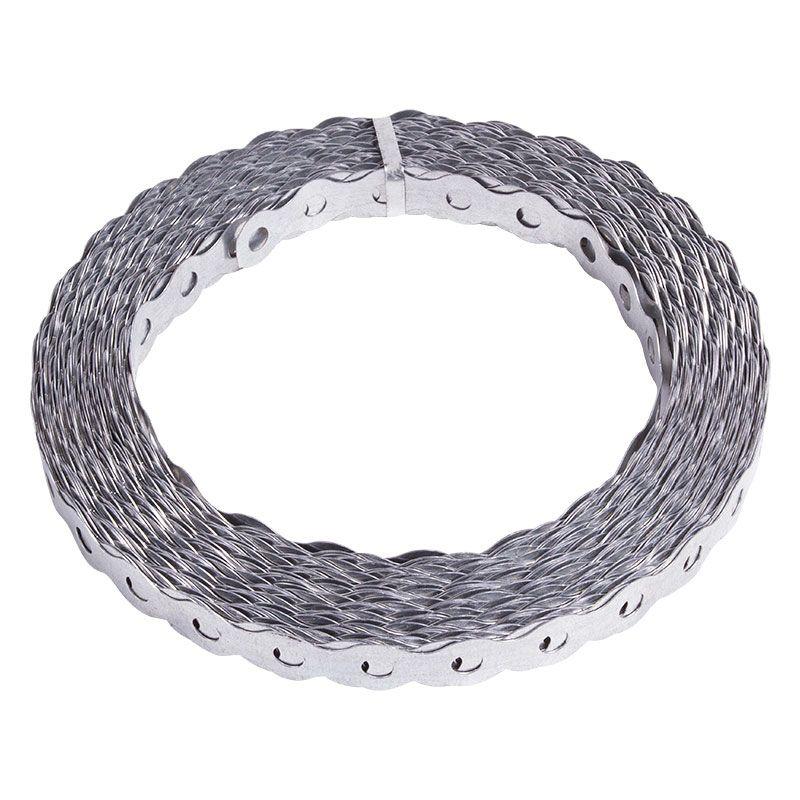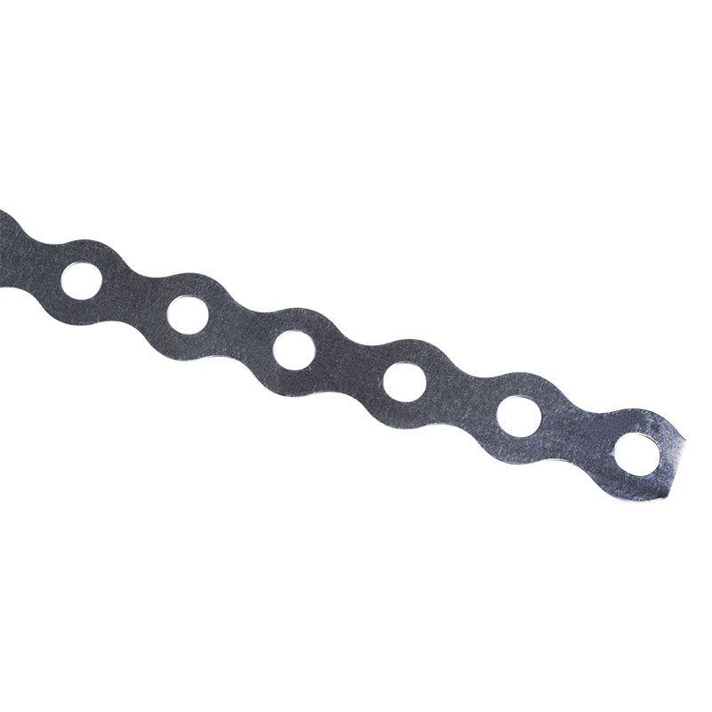 Представляет собой волнистую стальную ленту с перфорацией. Отличается высокой прочностью на излом и гибкостью, поэтому может принимать нестандартную форму. Цинковое покрытие защищает ленту от коррозии и продлевает срок ее службы. Монтируется при помощи стандартных гвоздей и шурупов. Ножницами по металлу можно отрезать фрагмент ленты любой длины.