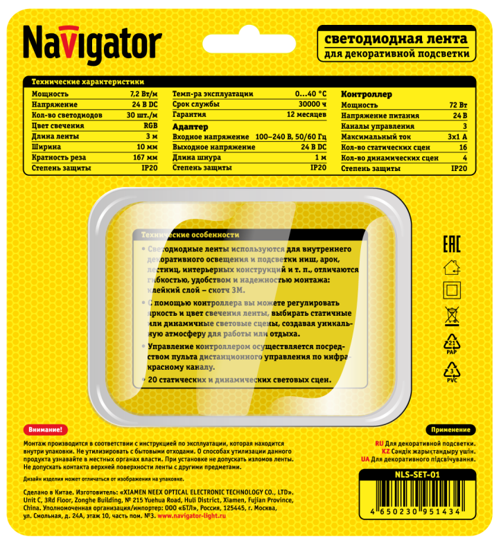 "Набор светодиодной ленты RGB с контроллером и адаптером Navigator NLS-SET – это готовое решение для внутреннего декоративного освещения вашего дома! Вам ничего не нужно приобретать дополнительно, подключите ленту Navigator и управляйте освещением с помощью пульта ДУ. Лента отличается гибкостью, надежностью и простотой монтажа, может использоваться для подсветки ниш, арок, лестниц, интерьерных конструкций и т. п.