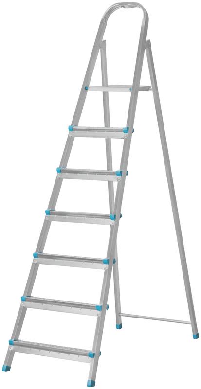 Лестница-стремянка КУРС РОС рассчитана на нагрузку в 120 кг, имеет широкую площадку и профилированные ступени. Поверхность не скользит, допускает уверенный подъем. Высокая дуга безопасности защищает от падения с высоты. Стальная рама с прямоугольным сечением обладает высокой прочностью. Ножки оснащены антискользящими накладками, обеспечивают безопасность и защищают пол от царапин.