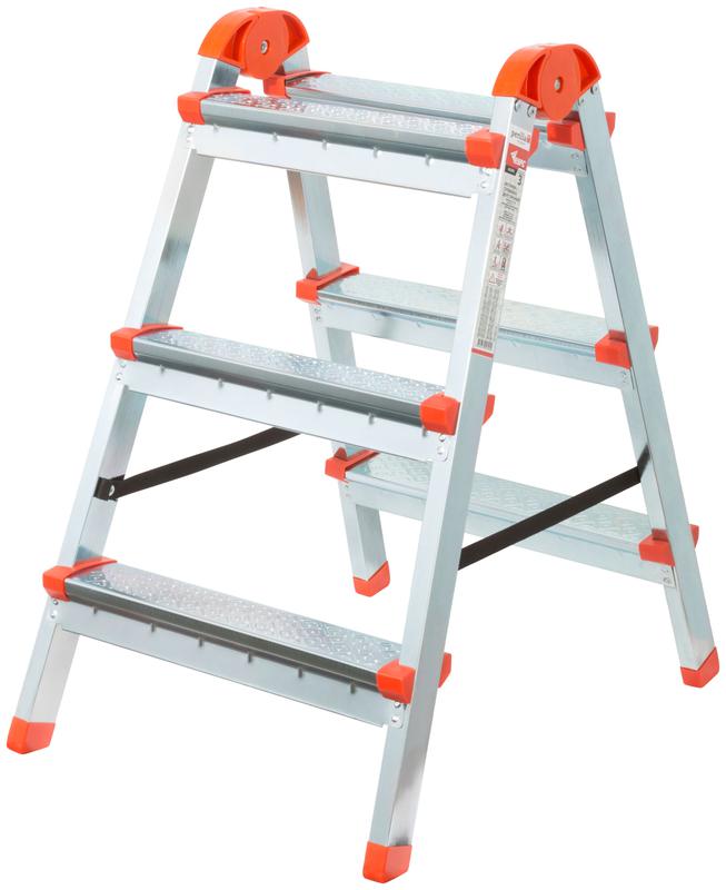 Лестница-стремянка КУРС отличается прочной стальной конструкцией высокой устойчивости с надёжными фиксаторами и ремнями. Широкие ступени обеспечивают комфортное положение ног и не вызывают усталость при длительном нахождении на лестнице. Компактный размер в сложенном состоянии обеспечивает удобство хранения и транспортировки. Между собой две стороны стремянки соединены шарнирами из прочного ABS-пластика, обеспечивающими легкое складывание и раскладывание изделия.