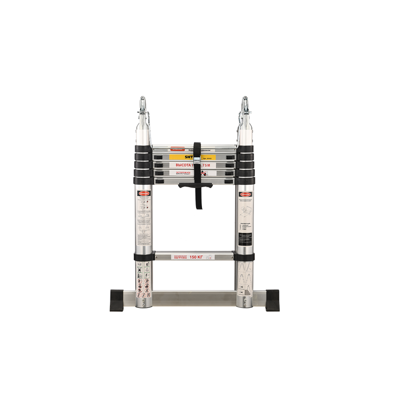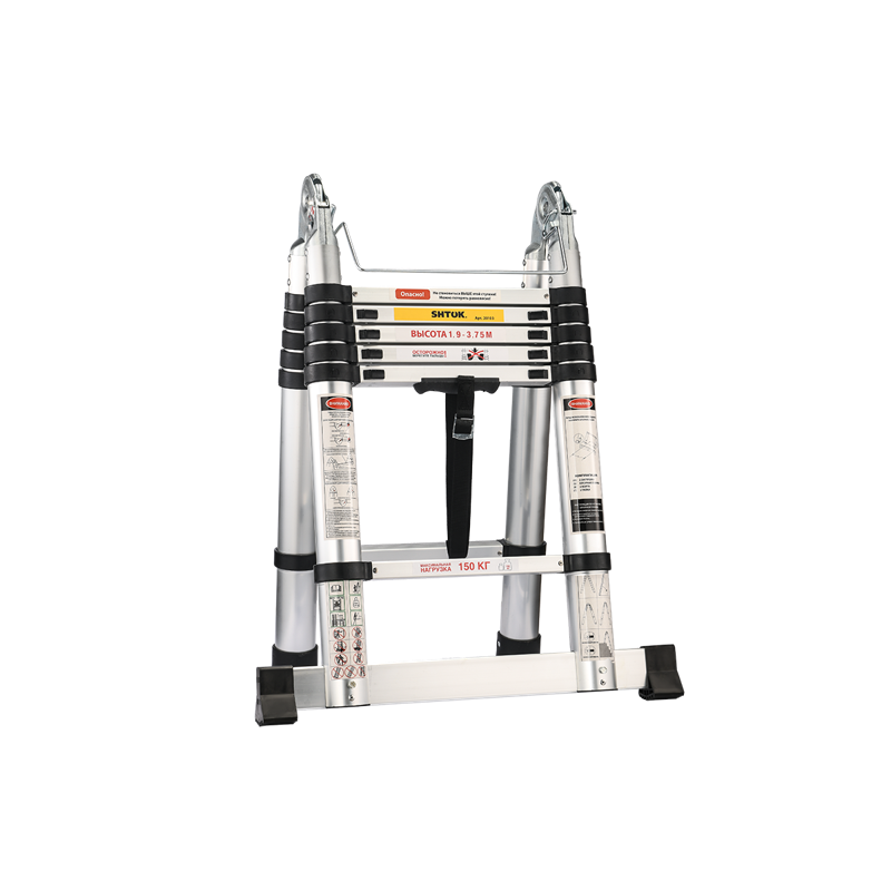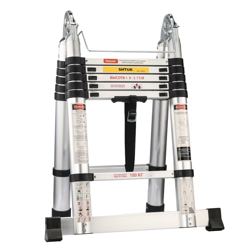 Телескопическая стремянка-лестница 1.9-3.75 м SHTOK 20103 – надёжный и функциональный инструмент, который пригодится для монтажа внешней и внутренней рекламы, систем кондиционирования и прочих монтажных работ.
