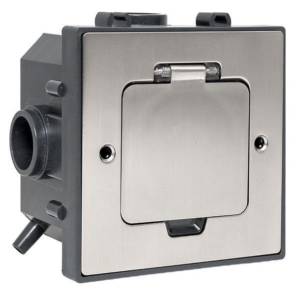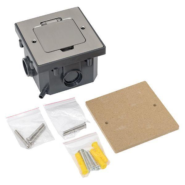 Лючок напольный C-Line 2 (с напольной коробкой) EKF. Предназначен для монтажа в бетонный пол. Емкость лючка – 2 модуля ЭУИ. Обладает повышенной ударопрочностью IK09 и степенью защиты от влаги и пыли IP44. Возможность блочного монтажа, лючки соединяются между собой с помощью специальных пазов. Лючок – это изделие прямоугольной формы, для компактного размещения электроустановочных изделий. В лючки C-line 12, C-line 8 и C-line 2 устанавливаются только модульные электроустановочные изделия. Лючки и комплектующие к ним представляют собой напольную систему C–Line EKF, включающую в себя лючок напольный, коробку напольную, приборную рамку и ниверлирующий комплект (в зависимости от конкретной ситуации список комплектующих может изменяться). Все изделия приобретаются отдельно.