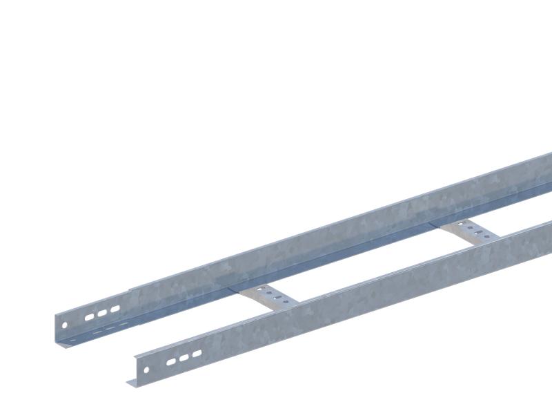 Лотки лестничного типа представляют собой два борта (лонжерона, желоба), которые соединяются поперечинами (планками). В результате этого получается конструкция, похожая на лестницу, откуда и возникло их название. Как правило, конструкция лестничных лотков за счет большего количества ребер жесткости обеспечивает более высокую несущую способность по сравнению с листовыми лотками при примерно равных весе и типоразмерах. Лестничные лотки предназначены для открытой прокладки кабеля и кабельных линий в жилых домах, офисных центрах, торговых комплексах и промышленных объектах различных типов. Конструкция лестничных лотков обеспечивает высокую несущую способность при малом собственном весе. Стыковка лотков осуществляется через телескопическое соединение «мама-папа» длиной 130 мм. При использовании соединителей лотки можно стыковать и «стык в стык». Для соединения используются метизы с резьбой М8. При необходимости изменения направления и разветвления трассы применяются фасонные элементы и различные аксессуары.