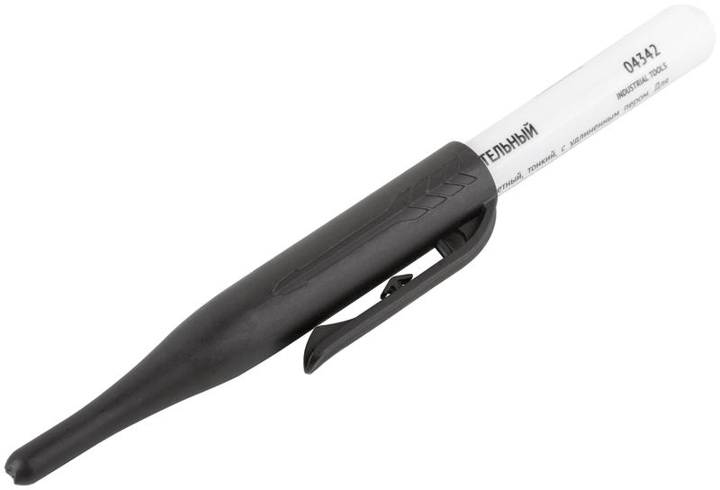 Перманентный. Тонкий, с удлиненным пером. Толщина линии 1 мм. Для разметки при проведении строительных работ. Применяется в труднодоступных местах, в том числе для разметки через отверстие. Возможно применение по большинству материалов (картон, металл, пластик, стекло и т.д.) Материал: пластик, акрил, чернила на спиртовой основе.