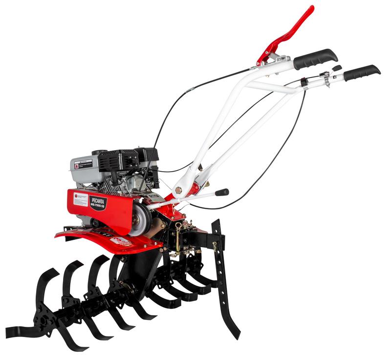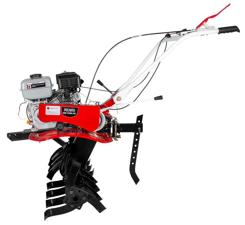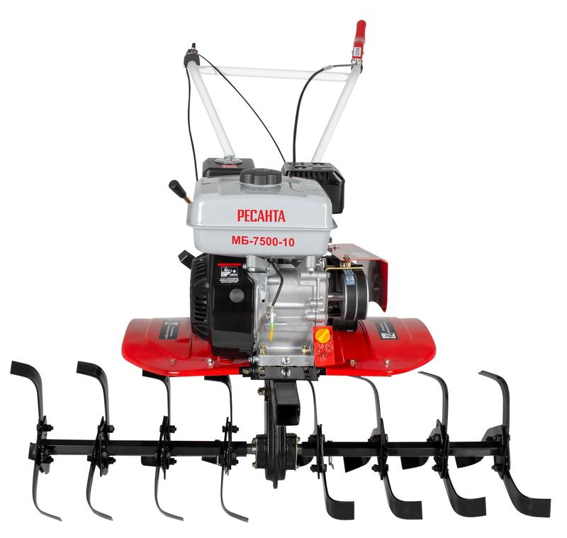 МБ-7500P-10 Ресанта - сельскохозяйственная машина, которая подойдет для механизации большого списка работ на приусадебном участке, в саду или небольшом фермерском хозяйстве. Мощности достаточно для обработки средних и больших территорий. Модель отличается высокой маневренностью, позволяет комфортно работать в узких междурядьях. С помощью разборной фрезы можно регулировать ширину обработки почвы от 45 см до 1 м. Мотоблок подходит для вспахивания почвы, в том числе целины. Закаленные фрезы диаметром 30 см. идут в комплекте. Глубина вспашки регулируется сошником.