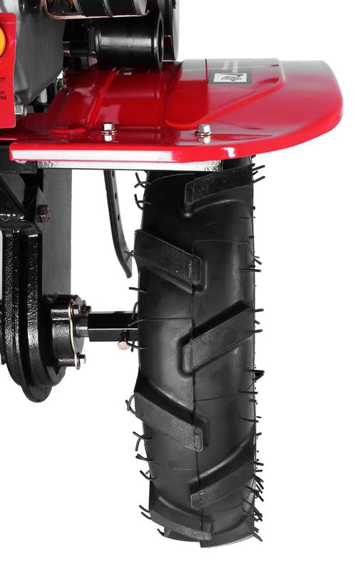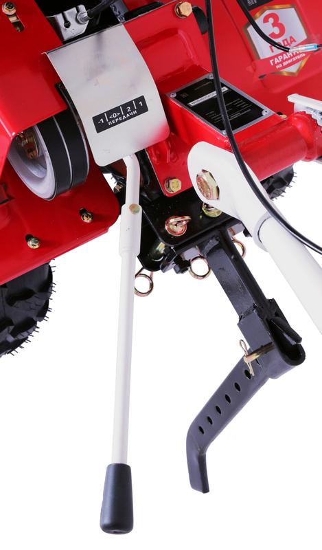 Особенность модели - шестеренчато-цепной привод рабочей оси и ременный привод для навесного оборудования. Большинство навесного оборудования в России выпускается под ременный привод. Возможна установка активной и пассивной оснастки, включая: плуг, окучник, картофелекопалку, косилку.