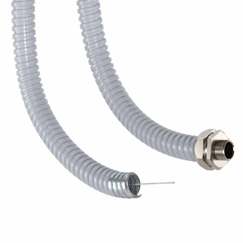 Гибкие металлические трубы (металлорукав) могут прокладываться под удобным углом, что повышает адаптивность системы под различные задачи и облегчает монтаж. Отличительные особенности металлорукавов - гибкость и высокая прочность. А покрытый плотной оболочкой из ПВХ, они обеспечивают идеальную герметизацию (IP66/IP67) и защиту кабеля от большинства масел и кислот. Металлорукав из оцинкованной стали в герметичной ПВХ изоляции применяется для прокладки электрических, телефонных, телевизионных проводов. Металлическая протяжка облегчает затягивание кабеля в металлорукав. Внешний диаметр 31,5 мм. Внутренний диаметр - 26,5 мм. 25м в бухте. Цвет оболочки - серый.