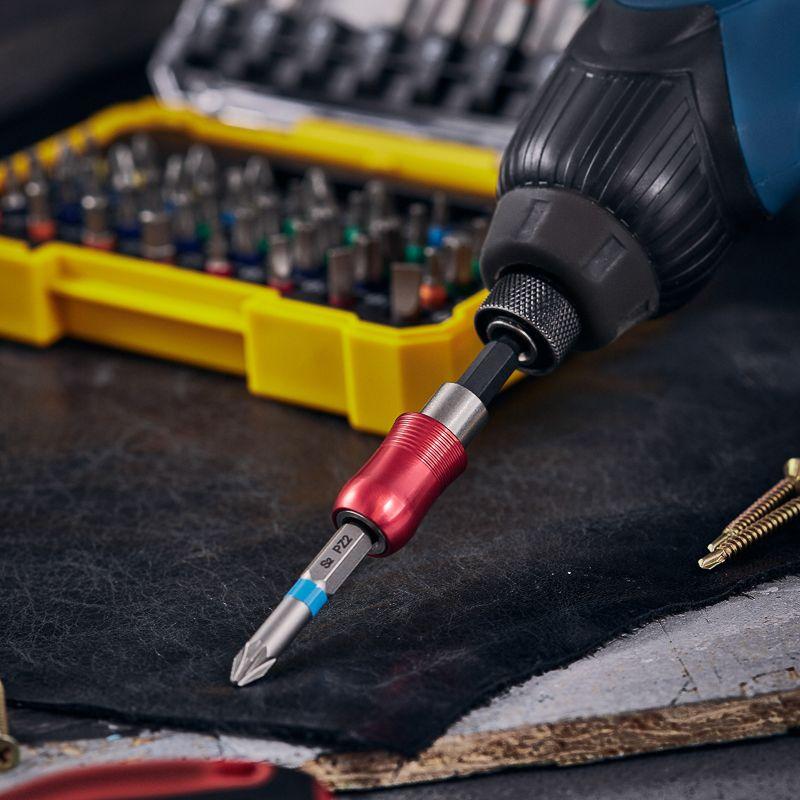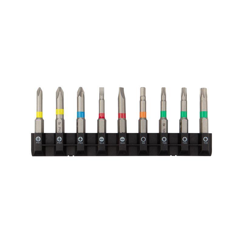 Набор односторонних бит с магнитным держателем используется для работы с крепежом популярных типов и размеров с помощью шуруповерта или отвертки-адаптера. Будет полезен как для профессионального использования, так и в быту. Биты изготовлены из легированной высокопрочной стали S2, что дает повышенную устойчивость к изломам и деформации в наиболее нагружаемых точках касания. Подходят для работы со шлицами типа PH, PZ, Torx, SL, HEX популярных диаметров. Намагниченные наконечники облегчают крепление и фиксацию крепежа на бите. В набор также входит магнитный держатель для бит, который позволяет легко менять биты и крепко удерживает их в посадочном отверстии. Шестигранный хвостовик подходит для установки на все виды шуруповертов и отверток-адаптеров и не дает проворачиваться бите в патроне инструмента. Комплектация: биты типа PH (8 шт.), биты типа PZ (7 шт.), биты типа Torx (22 шт.), биты типа SL (6 шт.), биты типа HEX (6 шт.), магнитный держатель (1 шт.). Набор упакован в удобный для хранения кейс, где для каждой биты предусмотрена отдельная ячейка.