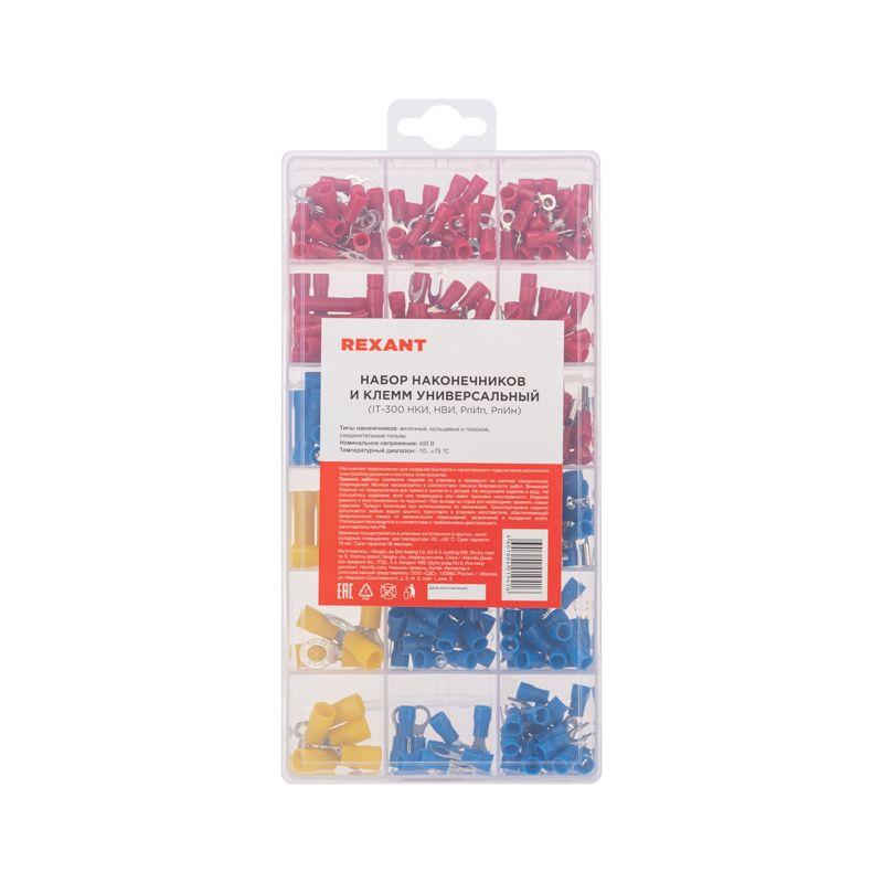 Набор наконечников и клемм универсальный (IT-300) REXANT предназначен для создания быстрого и качественного подключения различного электрооборудования и монтажа электросетей. Такой современный способ подготовки кабеля к соединению заменяет процесс облуживания или скрутки многожильных медных проводов, формируя целостное окончание кабеля с последующим подключением промышленного или бытового электрооборудования.