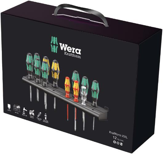 Набор отверток Kraftform XXL 12 предметов (PH 1/2; PZ 1/2; SL 4/5.5/6.5 силовые SL 5.5/7; SL VDE 2.5/3.5) Wera WE-051010