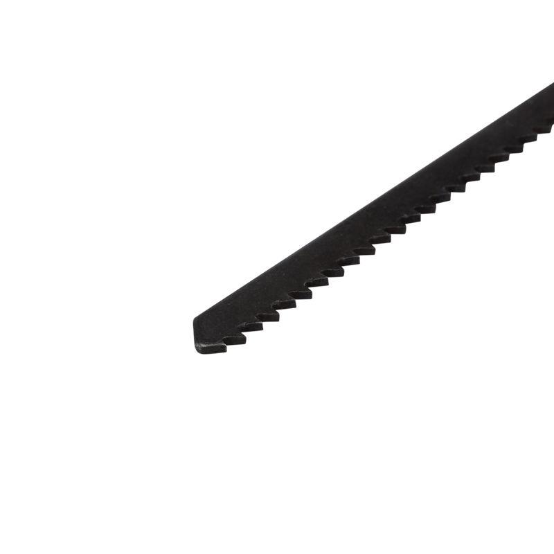 Пилки выполнены из высокоуглеродистой стали, поэтому сочетают в себе такие свойства, как прочность, износостойкость и пластичность. Подходят для быстрого, чистого, а также фигурного реза. Улучшенная закалка токами высокой частоты увеличивает твердость зубьев полотен и обеспечивает высокий ресурс. Универсальный Т-образный хвостовик подходит для установки на большинство моделей электролобзиков.