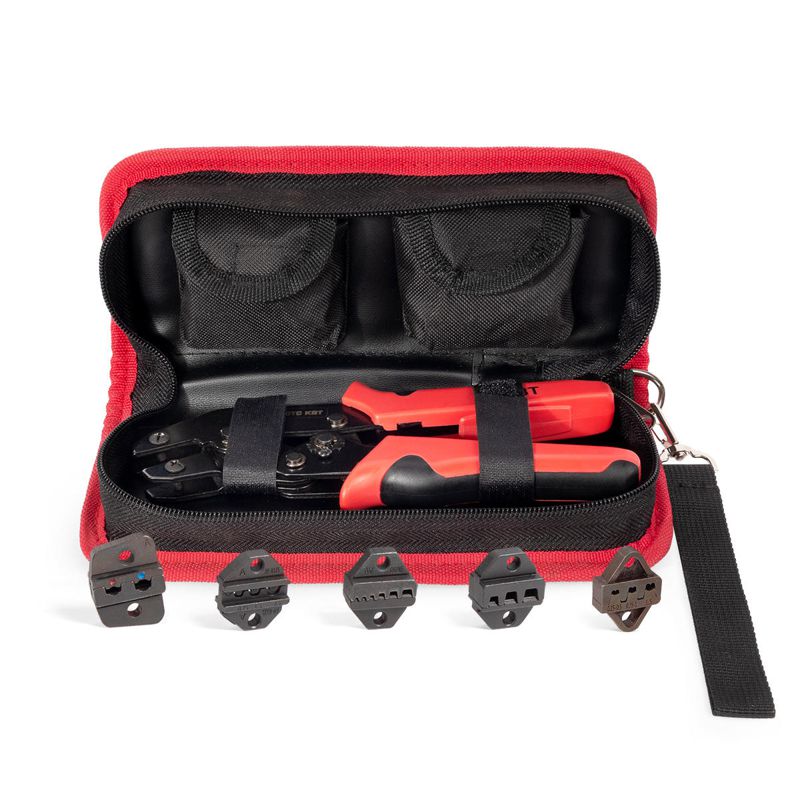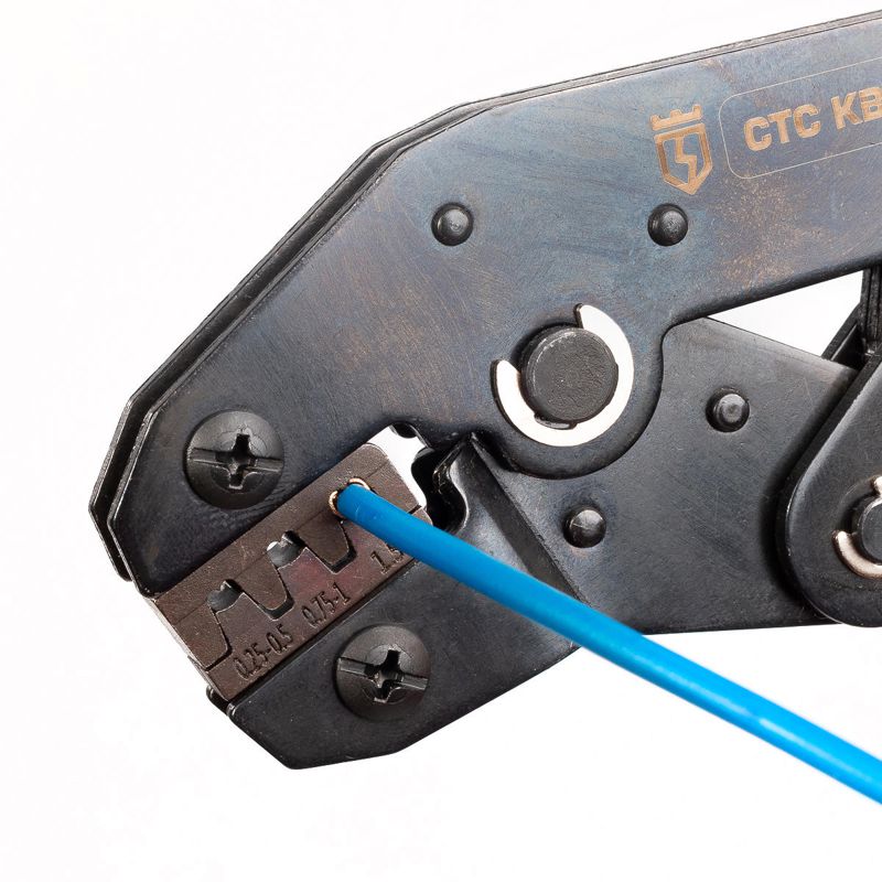 • Универсальный инструмент с набором сменных матриц для опрессовки широкого ряда неизолированных разъемов и наконечников (автоклемм), втулочных наконечников, изолированных наконечников и разъемов, неизолированных трубчатых наконечников и гильз