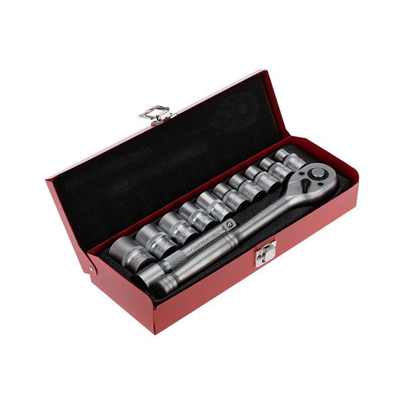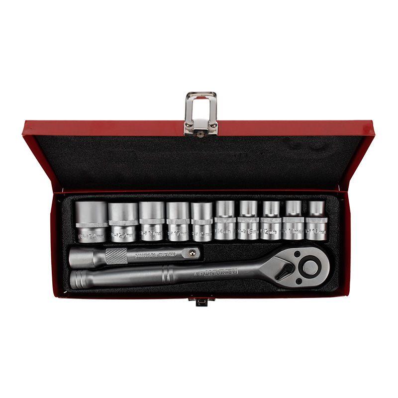 В наборе 10 съемных торцевых головок: 10, 11, 12, 13, 14, 15, 17, 19, 22 и 24 мм, которые имеют 6-гранный зев и посадочное место для присоединительного квадрата 1/2”.