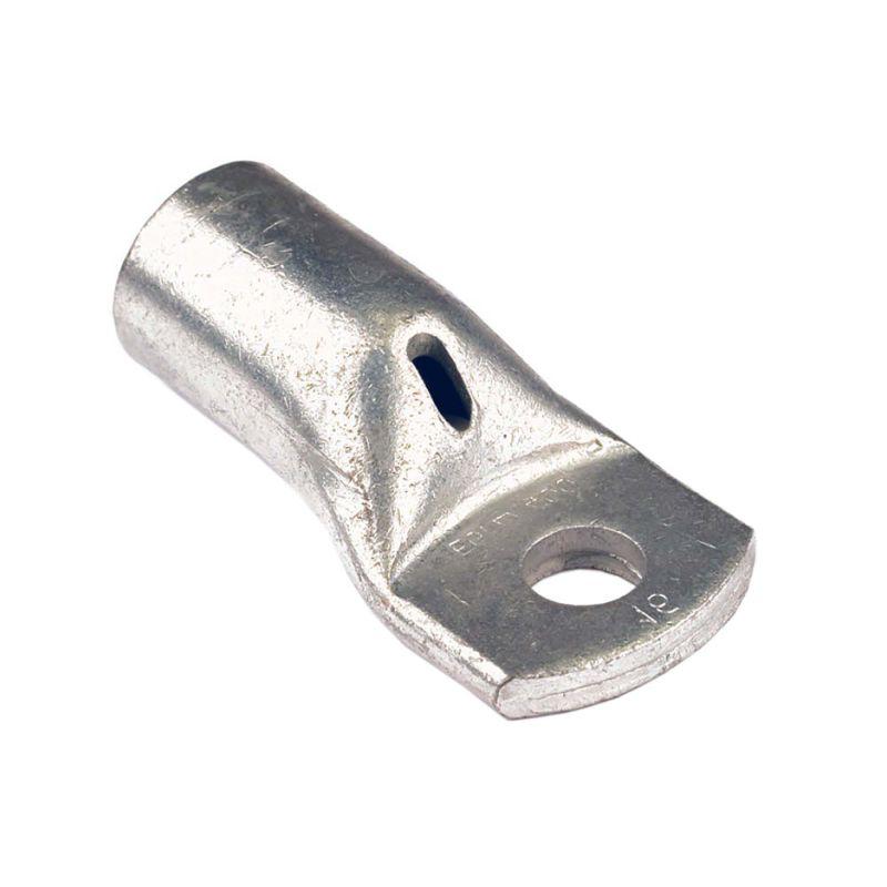 Неизолированный наконечник (ТМЛ) предназначен для оконцевания предварительно зачищенных от изоляции медных проводов и их присоединения к медным клеммам, шинам, зажимам. Материал контактной части – медь М1. Луженое покрытие внешних и внутренних поверхностей с использованием висмута защищает от коррозии и увеличивает проводимость защитного слоя. Особенностями наконечника являются смотровое отверстие для контроля качества жилы и наконечника, равномерное блестящее покрытие, номинальное напряжение до 30 кВ. Наконечник используется для крепления контактной площадки с помощью метиза М12. Сечение проводника – 300 мм2. Номинальный ток – 695 А.