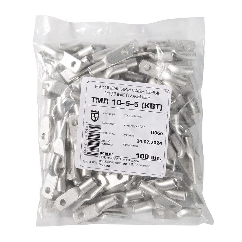 Наконечник луженый медный ТМЛ 10-5-5 опрес. КВТ 40831