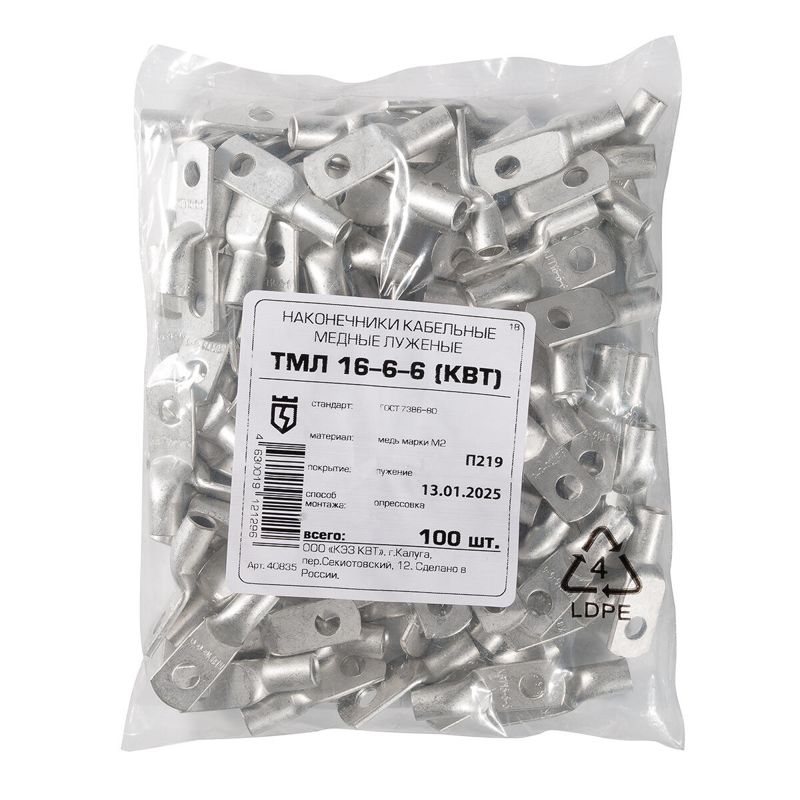 Наконечник луженый медный ТМЛ 16-6-6 опрес. КВТ 40835