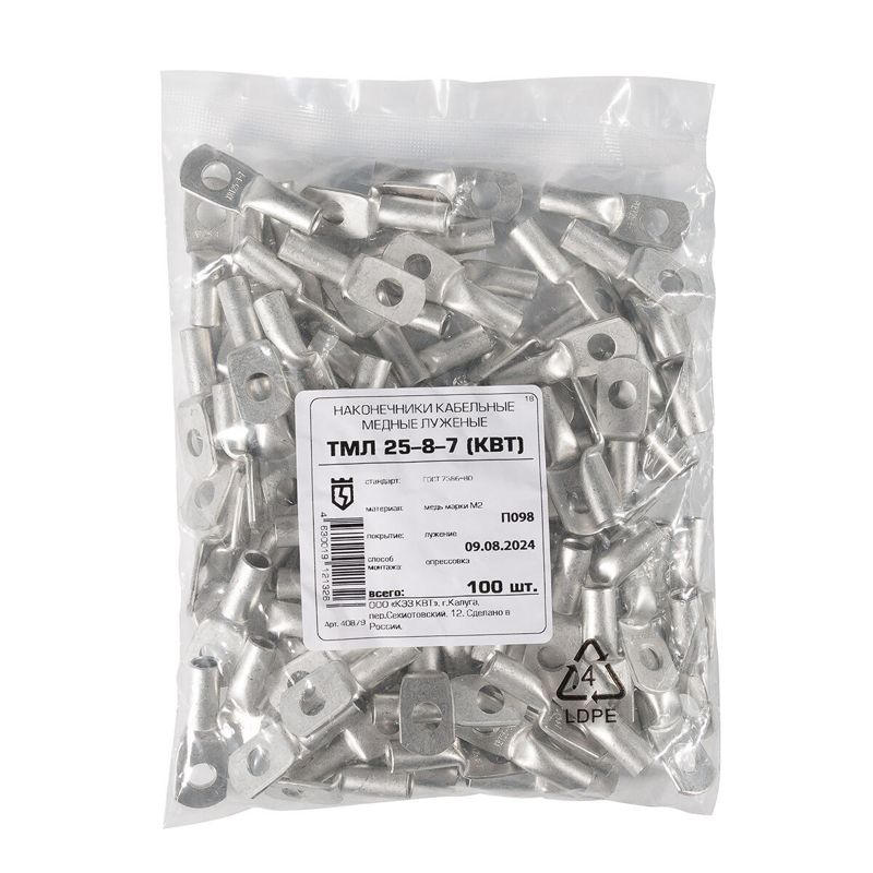 Наконечник луженый медный ТМЛ 25-8-7 опрес. КВТ 40879