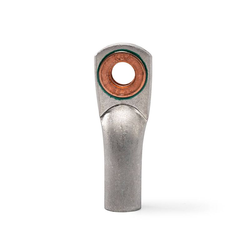 • Предназначены для оконцевания опрессовкой алюминиевых кабелей и проводов и последующего подключения их к медным шинам и клеммам электротехнических устройств • Материал: электротехнический алюминий марки АД1 и медь марки М1 • Стыковой шов между медным кольцом и алюминиевым корпусом наконечника герметизирован высокотемпературным эпоксидным компаундом • Новая конструкция алюмомедных наконечников соответствует европейским стандартам • Длина наконечников и размеры трубной части соответствуют геометрии ГОСТ 9581 на кабельные алюминиевые и алюмомедные наконечники • Секторные жилы рекомендовано скруглить набором матриц НМ-300 С (КВТ)