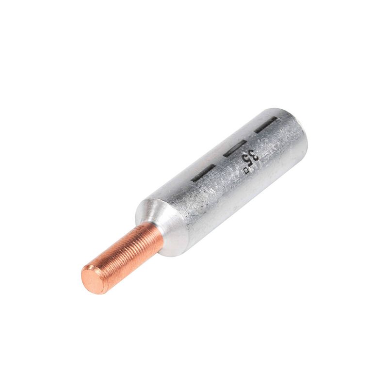 • Предназначены для оконцевания опрессовкой алюминиевых кабелей и проводов и последующего подключения их к выводам автоматических выключателей и прочим устройствам с ограниченной шириной контактной клеммы. • Материал: электротехнический алюминий марки АД1 и медь марки М1 • Рабочее напряжение: до 1 кВ • Медная и алюминиевая части наконечника соединены между собой методом фрикционной сварки и обеспечивают контакт металлов на молекулярном уровне • Обеспечивают прямое подключение проводов СИП к автомату без использования дополнительных приспособлений • На трубной части наконечников нанесена разметка, определяющая местоположение и количество опрессовок