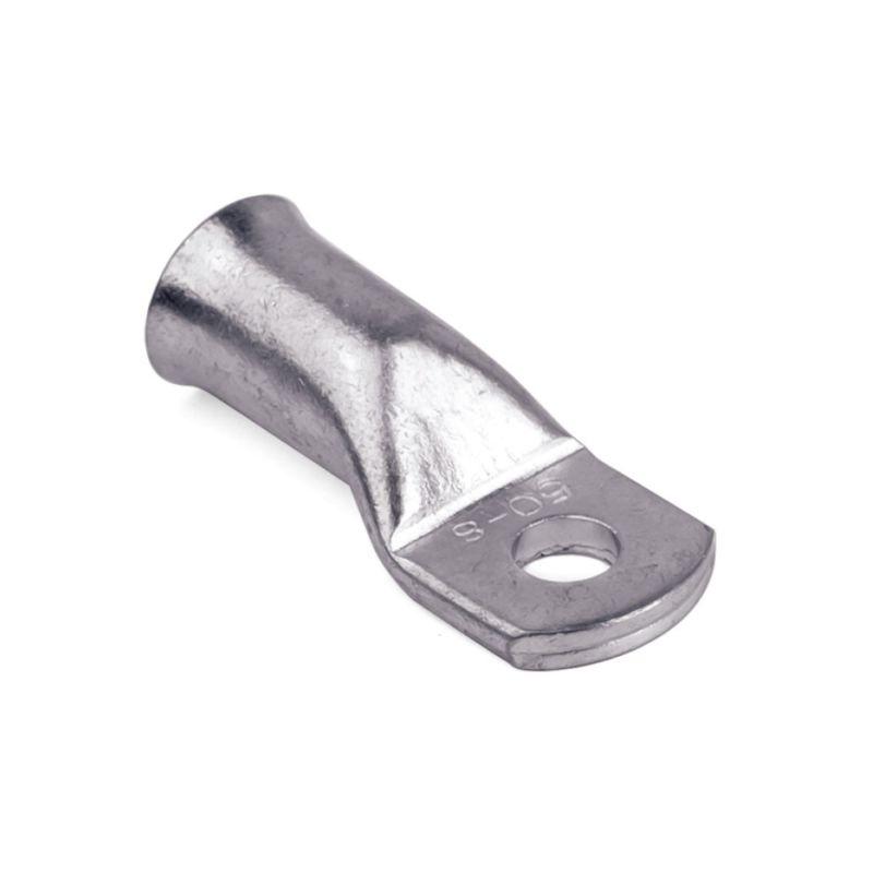 Неизолированный наконечник c развальцованной монтажной гильзой (ТМЛ-Г) предназначен для оконцевания предварительно зачищенных от изоляции медных или алюминиевых проводов и их присоединения к медным клеммам, шинам, зажимам. Материал контактной части – медь М1. Луженое покрытие внешних и внутренних поверхностей с использованием висмута защищает от коррозии и увеличивает проводимость защитного слоя. Особенностями наконечника являются развальцованная на 15% гильза, увеличенный на 8% внутренний диаметр гильзы, возможность подключать кабель с высокой степенью гибкости 6 категории. Наконечник используется для крепления контактной площадки с помощью метиза М12. Сечение проводника – 95 мм2.