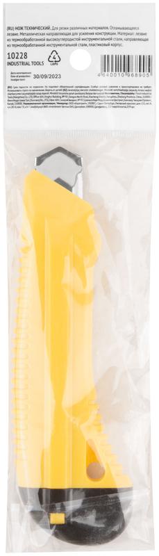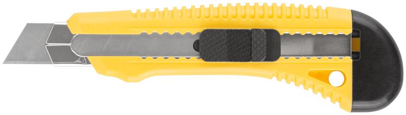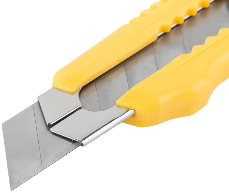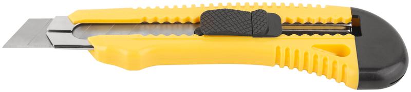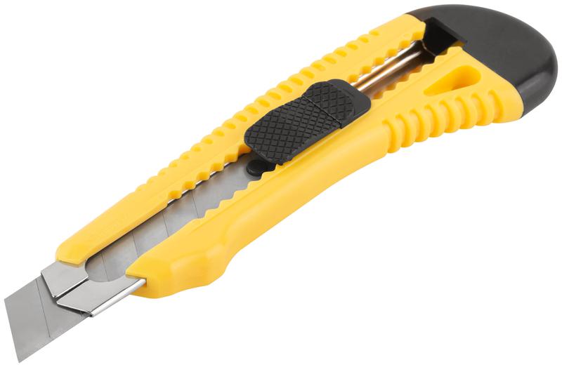 Применяется для резки бумаги, обоев,скотча, картона средней твердости.Острое лезвие с большим ресурсом выполнено из инструментальной стали. Рифленая форма ножа обеспечивает крепкий захват и предотвращает выскальзывание при использовании. Компактный корпус изготовлен из пластика, удобен в использовании и занимает минимальное место.