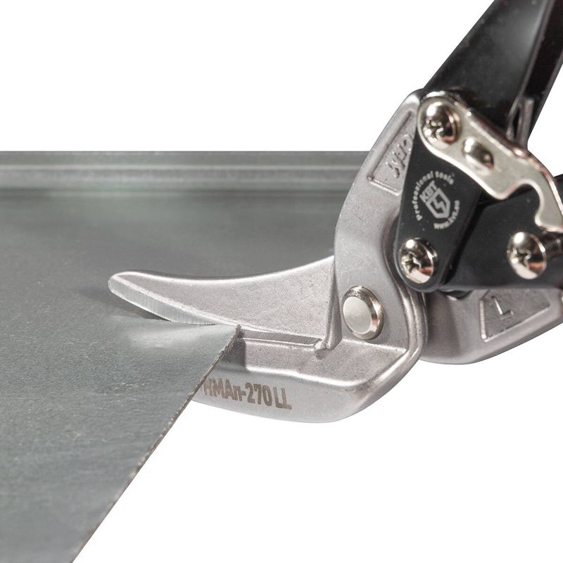 • Удлинённая конструкция с выносом позволяет производить длинный рез замкнутых коробов, лотков, тонкостенных металлических профилей и профнастилов