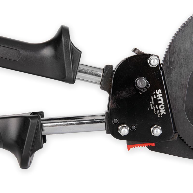 Секторные ножницы SHTOK НС-45 05004 предназначен для резки медного и алюминиевого кабеля диаметром 45 мм. Для увеличения усилия предусмотрены выдвижные ручки. Разблокировать лезвия можно в любой момент. Компактная конструкция обеспечивает работу одной рукой.