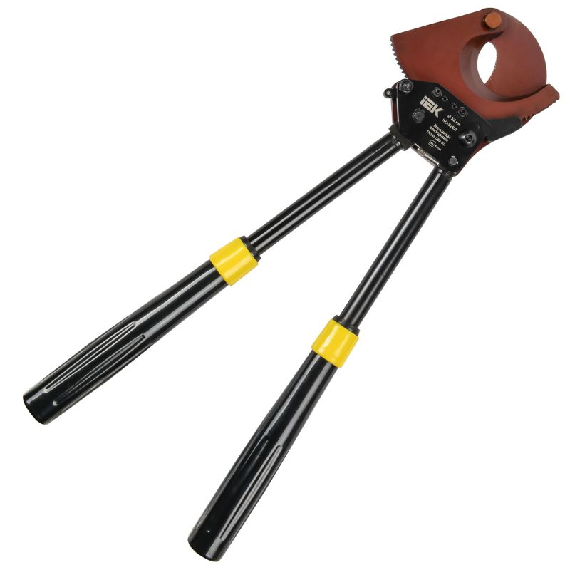 Ножницы секторные НС-52ВЛ IEK для резки стального троса диаметром до 18мм, провода АС и АСК максимальным диаметром до 52 мм. Подходит для: провода АС, АСК, СИП-3 диаметром до 52 мм (1440мм2); стальных канатов 1х7 диаметром до 12 мм; 1х19, 1х37 диаметром до 16 мм; кабелей с проволочной броней диаметром до 16 мм; прутков из низкоуглеродистой стали диаметром до 16 мм; труба из нержавеющей стали диаметром до 48мм.