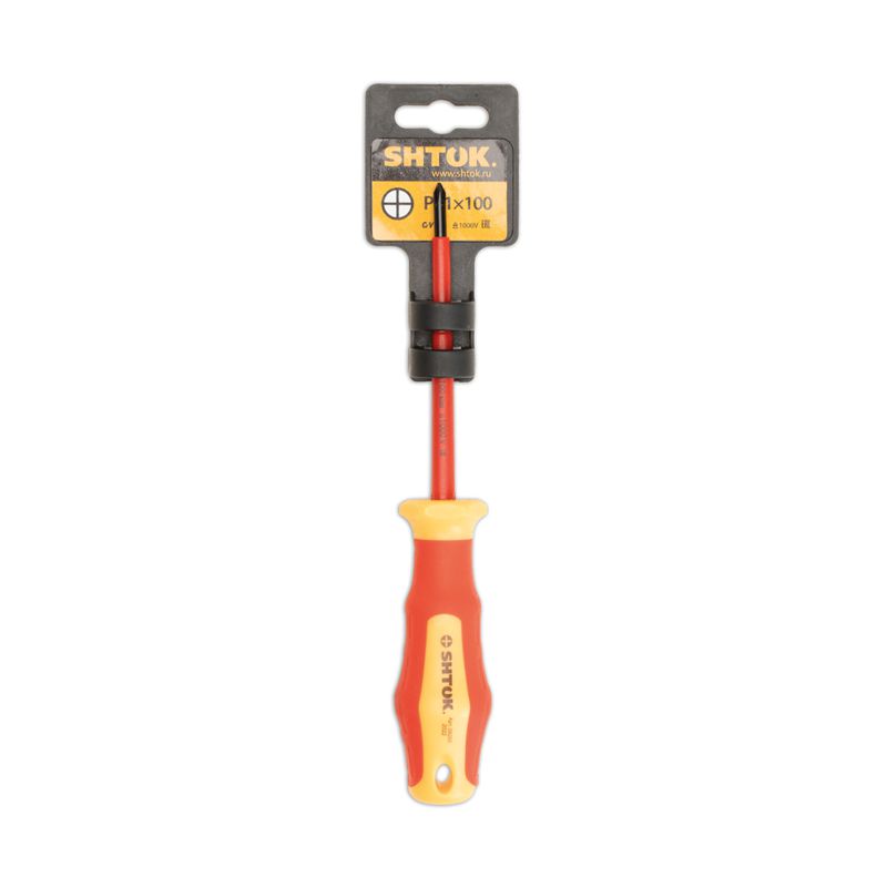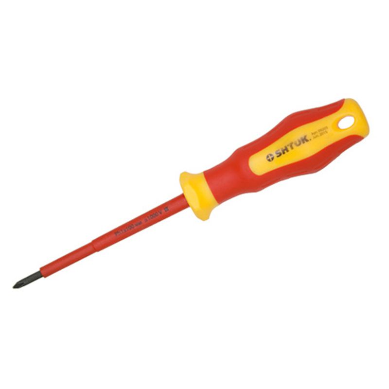 Диэлектрическая крестовая отвертка SHTOK 1000В Ph1x100 мм 09205 используется для откручивания и закручивания крепежных элементов с профилем Phillips, а также для работ под напряжением. Удобство и точность работы обеспечивается за счет рукоятки специальной формы. Рабочая часть изготовлена из хром-ванадиевой стали, что увеличивает прочность и износостойкость отвертки.
