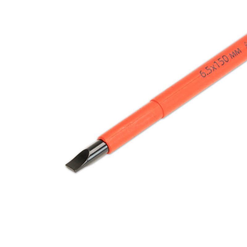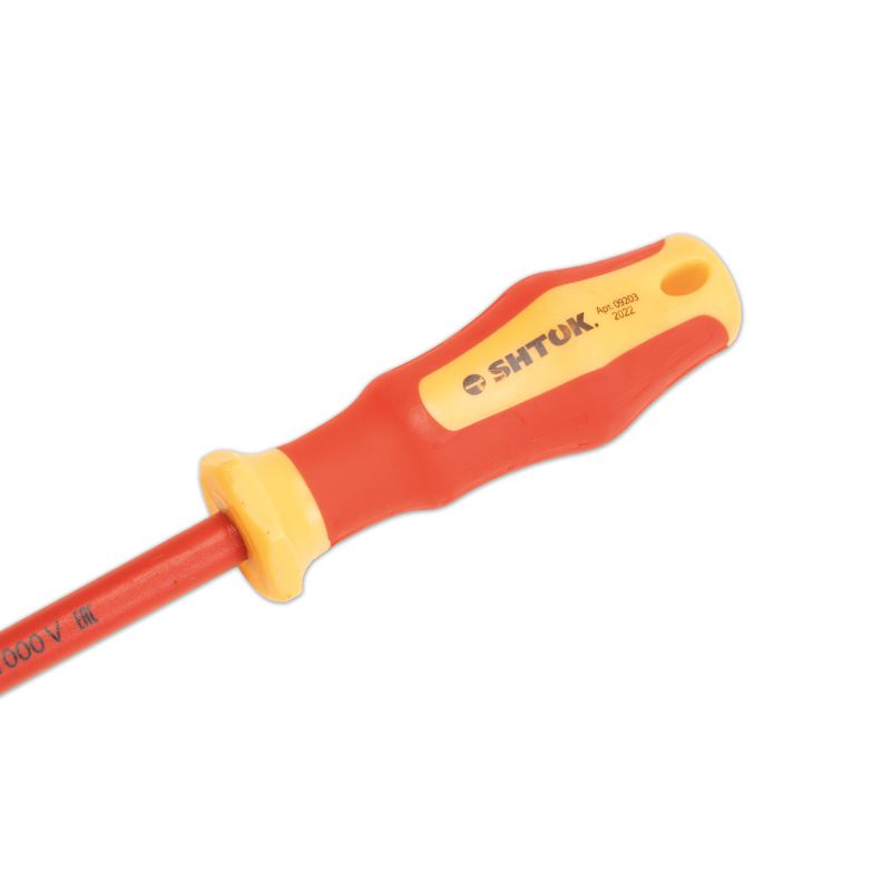 Рабочая часть выполнена из хром-ванадиевой стали, что увеличивает прочность диэлектрической шлицевой отвертки SHTOK 1000В 6.5x150 мм 09203.