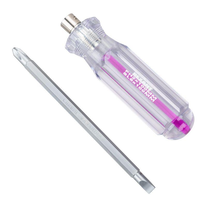 Двухсторонний стержень инструмента выполнен из высококачественной хромованадиевой стали. С одной его стороны располагается шлиц PH2, с другой – SL6. Наконечники намагничены, благодаря чему шуруп, саморез или винт не упадет при извлечении или установке.