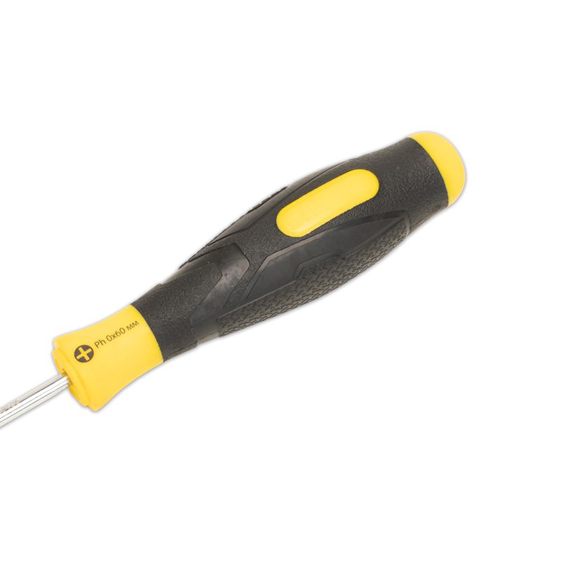 Крестовая отвертка SHTOK Ph0x60 мм 09106 оснащена двухкомпонентной рукояткой, обеспечивающей надежный хват. Вставки из термопластичного эластомера обеспечивают удобство работы инструментом. Магнитный наконечник позволяет осуществлять монтаж в расположенных вертикально приборах. Рабочая часть данной отвертки выполнена из термообработанной стали.