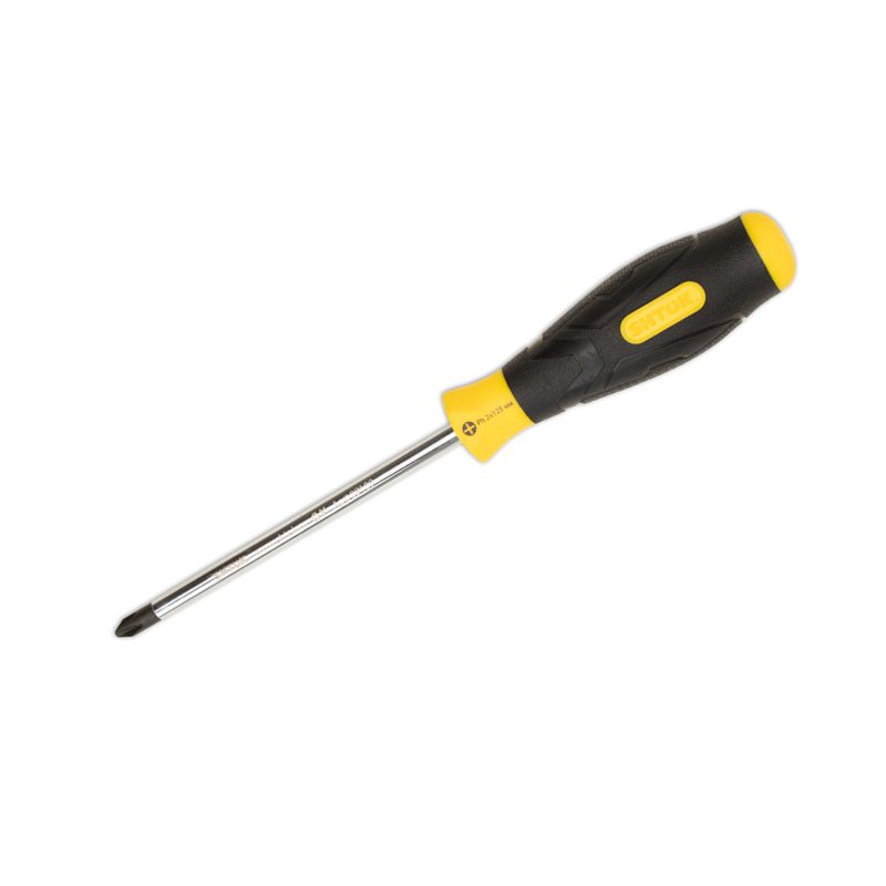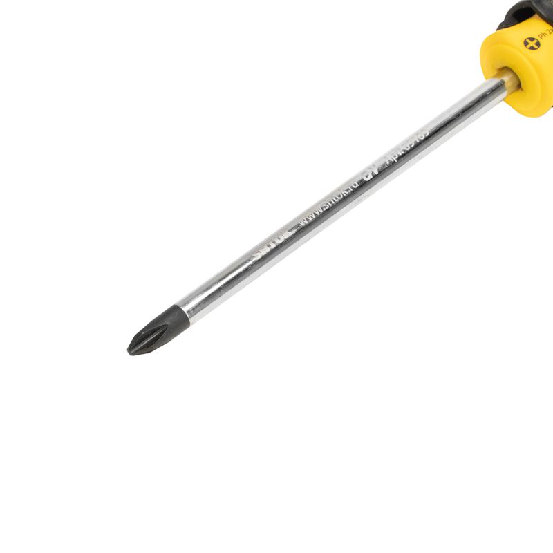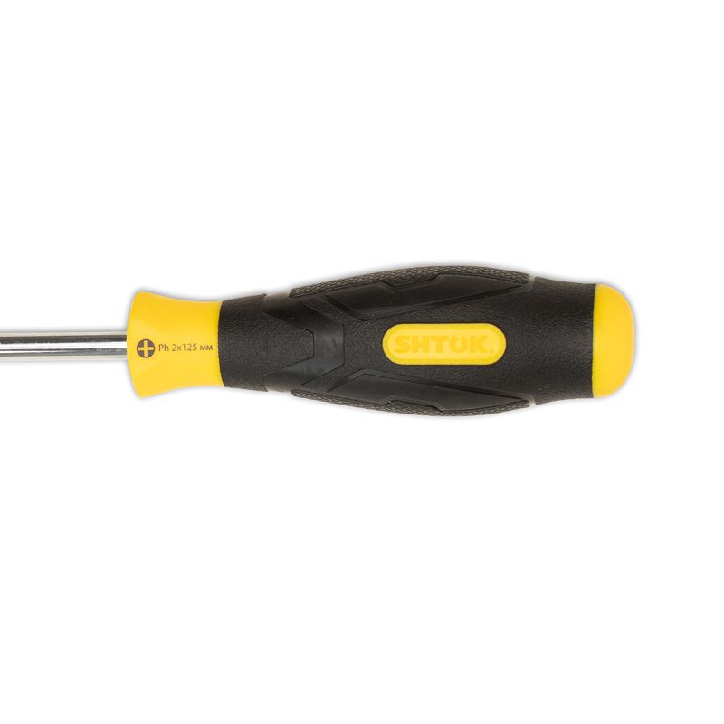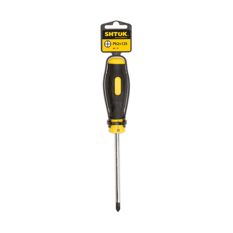 Крестовая отвертка SHTOK Ph2x125 мм 09109 используется для откручивания или закручивания крепежных элементов с рабочим профилем Phillips. Возможно использование рабочей части отвертки в качестве рычага без опасности излома. Магнитный наконечник обеспечивает удобство монтажа в приборах, расположенных вертикально. Удобная рукоятка со вставками из термопластичного эластомера обеспечивает надежный хват и точность работы.