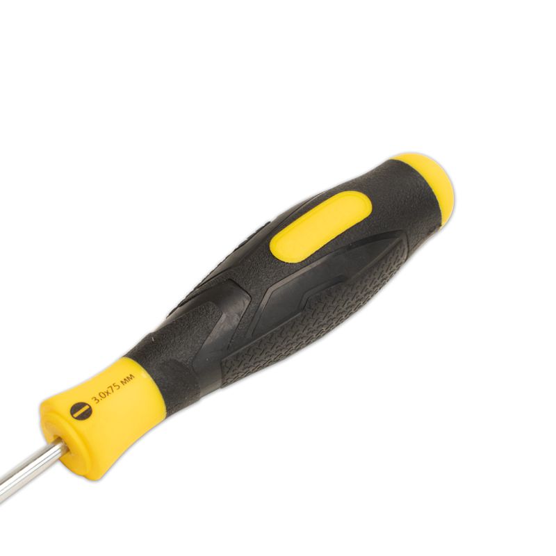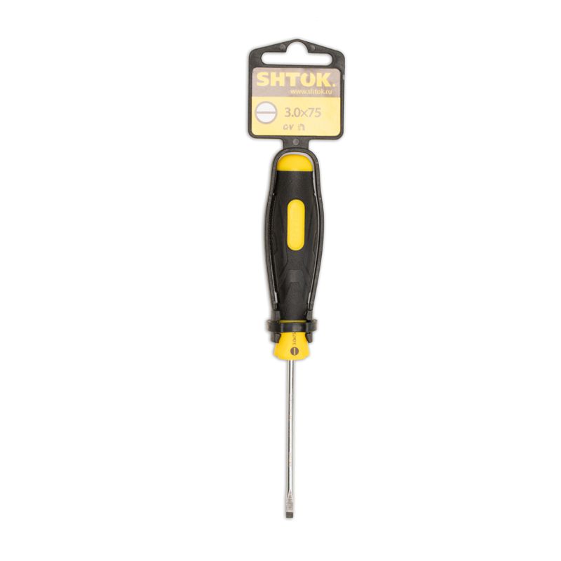 За счет рабочей части, изготовленная из термообработанной стали, содержащей хром-молибден-ванадиевую лигатуру, обеспечивается прочность и долговечность шлицевой отвертки SHTOK 3.0x75 мм 09101.