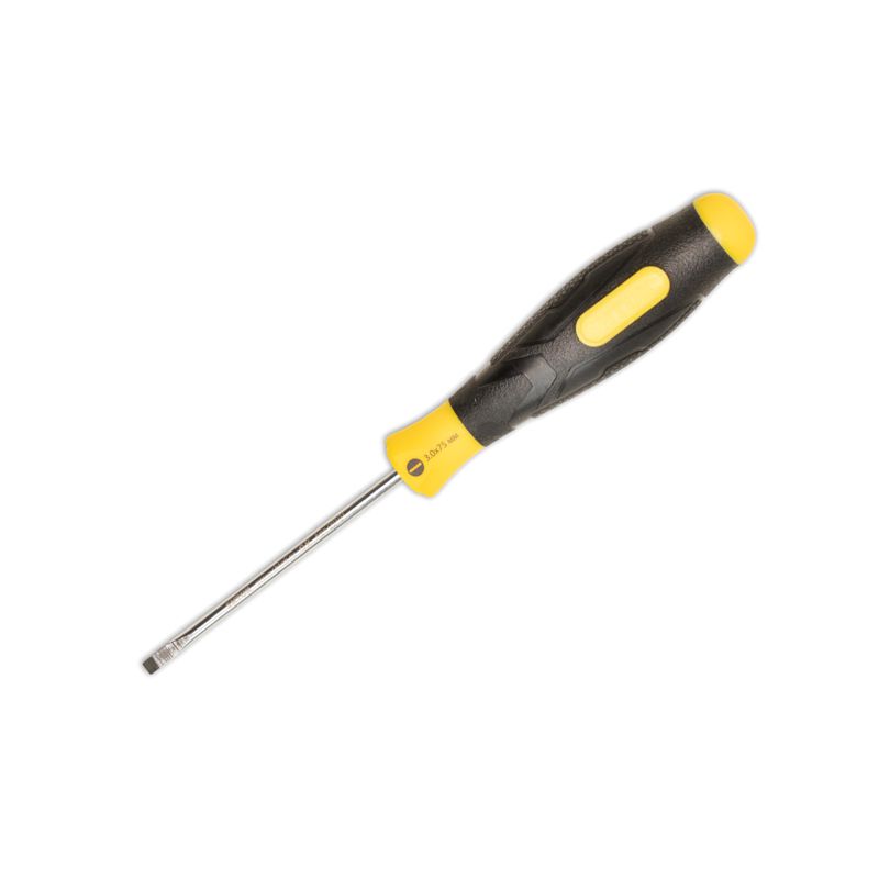 Шлицевая отвертка SHTOK 3.0x75 мм 09101 предназначена для работы с резьбовыми соединениями. За счет магнитного наконечника возможен монтаж в приборах, которые расположены вертикально. Рабочая часть изготовлена из термообработанной стали, увеличивающей срок службы отвертки.