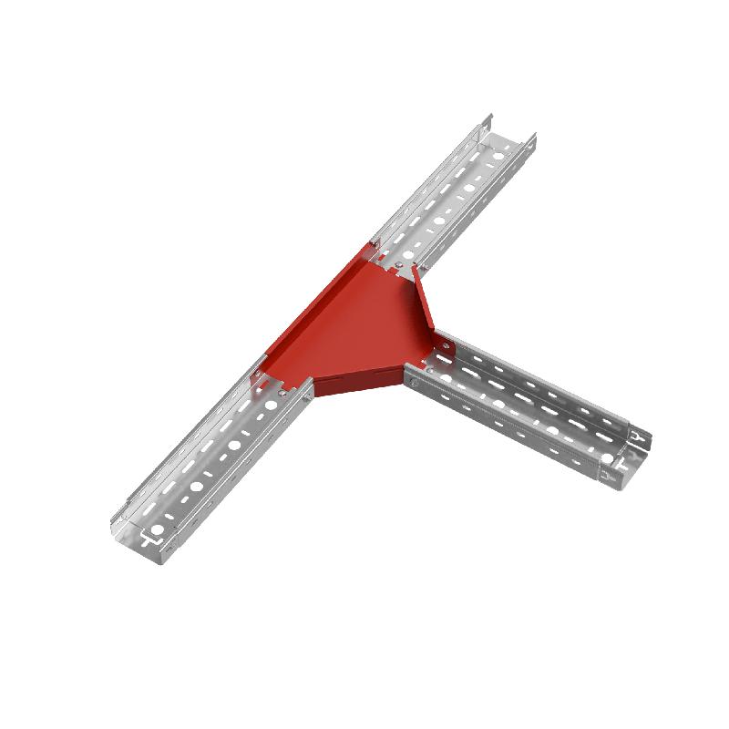 Т-отвод серии "PLUS" используется для создания ответвления трассы. Модификация изделия позволяет придерживаться заданных радиусов изгиба кабельной трассы при монтаже. Элемент рекомендовано применять c металлическим листовым лотком этой же серии шириной 100 мм и высотой борта 50 мм. Изделие выполнено из стали оцинкованной по методу Сендзимира. Предназначено для использования в местах предпочтительно с сухим климатом, внутри помещений и в слабоагрессивных средах, в соответствии с ГОСТ 15150-69. Специальные соединительные лепестки на корпусе секции обеспечивают необходимую жёсткость конструкции стыкового узла и целостность трассы. Т-отвод легко монтируется с помощью метизов.