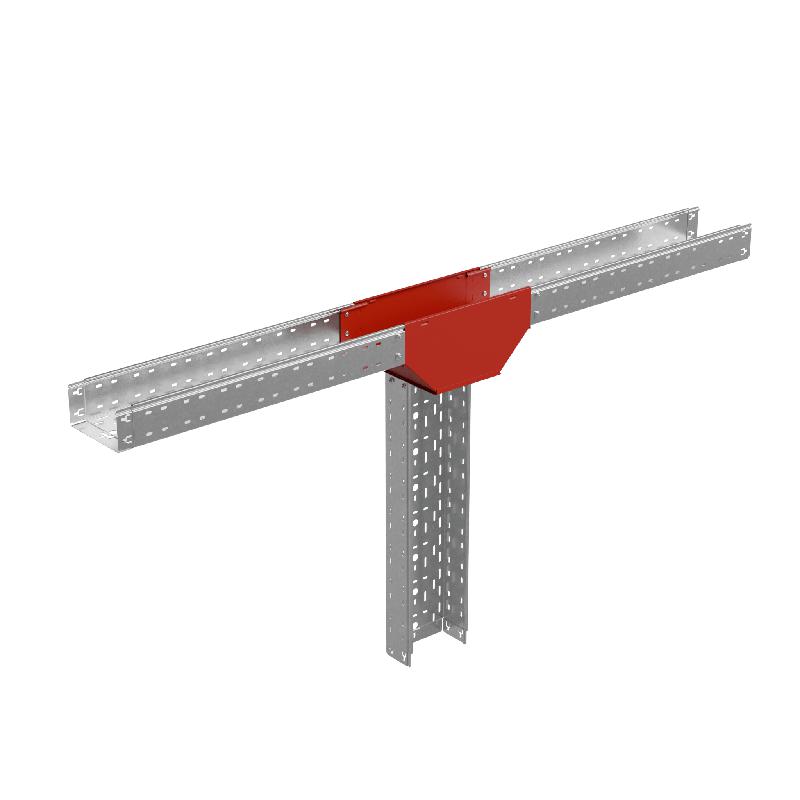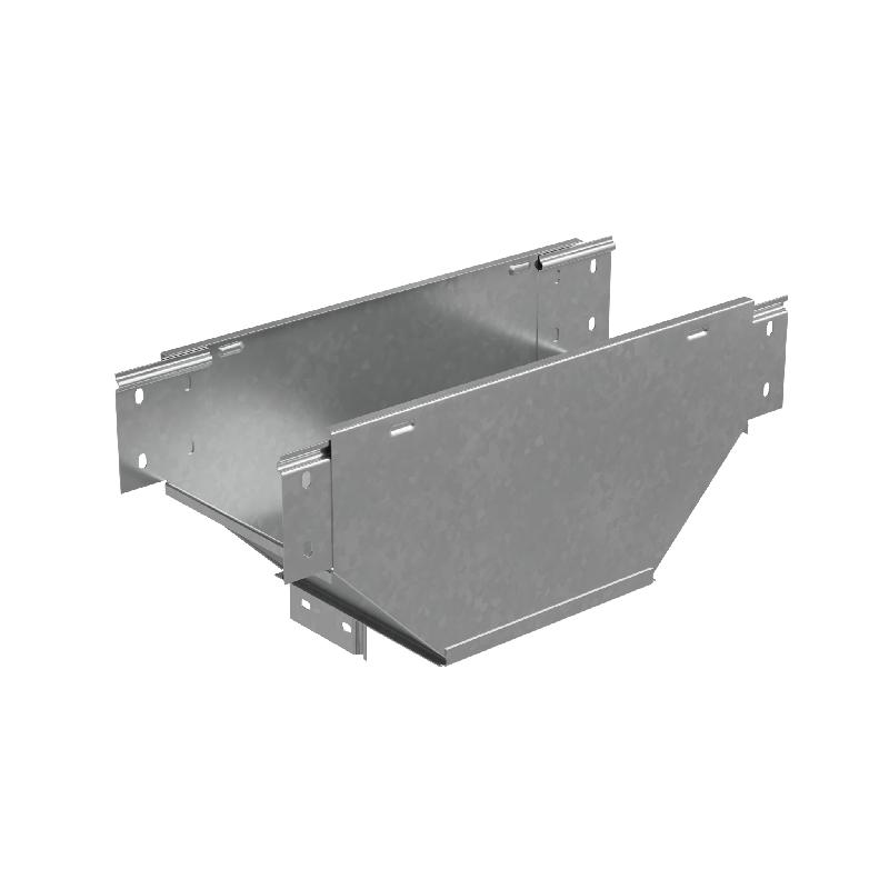 Т-отвод вертикальный вниз серии "PLUS" позволяет придерживаться заданных радиусов изгиба кабельной трассы при монтаже. Модификация изделия используется для отвода трассы вниз, при этом разворачивая открытую часть металлического лотка вокруг своей оси на 90 градусов. Элемент рекомендовано применять c металлическим листовым лотком этой же серии шириной 200 мм и высотой борта 100 мм. Изделие выполнено из стали оцинкованной по методу Сендзимира. Предназначено для применения в местах предпочтительно с сухим климатом, внутри помещений и в слабоагрессивных средах, в соответствии с ГОСТ 15150-69. Специальные соединительные лепестки на корпусе секции обеспечивают необходимую жёсткость конструкции стыкового узла и целостность трассы. Для дополнительной защиты элемента кабельной трассы от механических повреждений, попадания пыли и мусора, используйте крышку для т-отвода серии "PLUS".