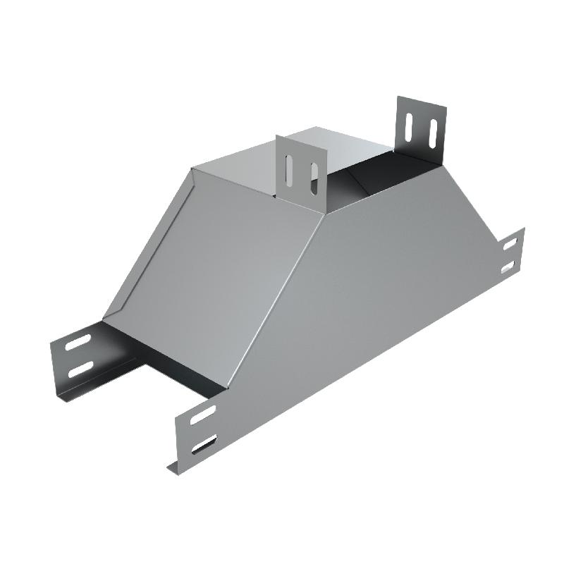 Т-отвод вертикальный БАЗОВОЙ СЕРИИ позволяет придерживаться заданных радиусов изгиба кабельной трассы при монтаже. Модификация изделия используется для отвода трассы вверх, при этом разворачивая открытую часть металлического лотка вокруг своей оси на 90 градусов. Элемент рекомендовано применять c металлическим листовым лотком этой же серии шириной 150 мм и высотой борта 50 мм. Изделие выполнено из стали оцинкованной по методу Сендзимира. Предназначено для применения в местах предпочтительно с сухим климатом, внутри помещений и в слабоагрессивных средах, в соответствии с ГОСТ 15150-69. Т-отвод легко монтируется с помощью метизов. Специальные соединительные лепестки на корпусе секции обеспечивают необходимую жёсткость конструкции стыкового узла и целостность трассы. Для дополнительной защиты элемента кабельной трассы от механических повреждений используйте крышку для т-отвода.