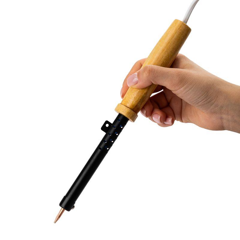 Паяльник с деревянной ручкой серии ЭПСН мощностью 40Вт REXANT предназначен для ручного монтажа/демонтажа электронных компонентов и других мелких и средних деталей. Подходит как для любительского, так и для профессионального использования. Медное жало выполнено в форме клина (лопатки), в случае необходимости его можно легко и быстро заменить. Сменное жало в комплект не входит.