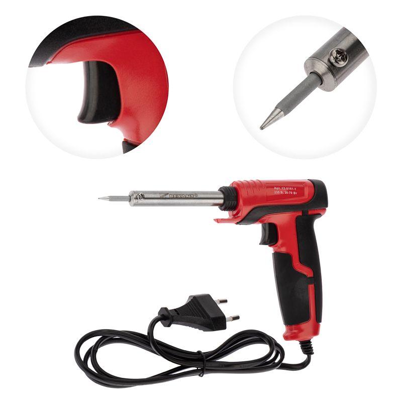Паяльник-пистолет двухрежимный серии ПРОФИ мощностью 30/70Вт REXANT предназначен для ручного монтажа/демонтажа электронных компонентов и других мелких и средних деталей.