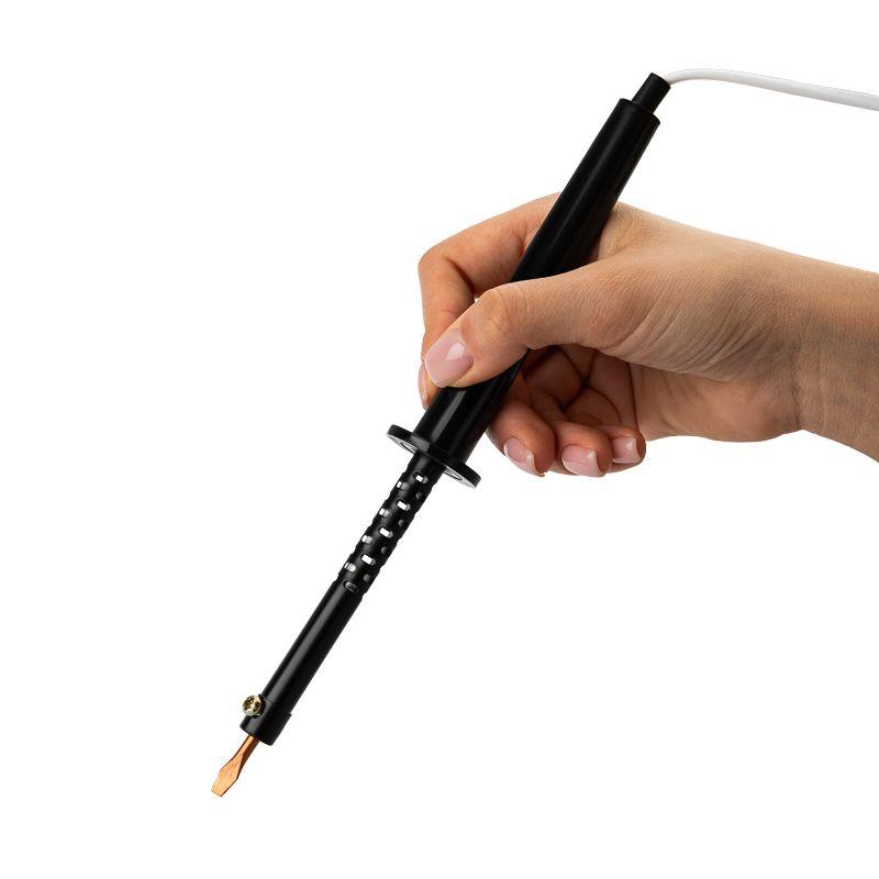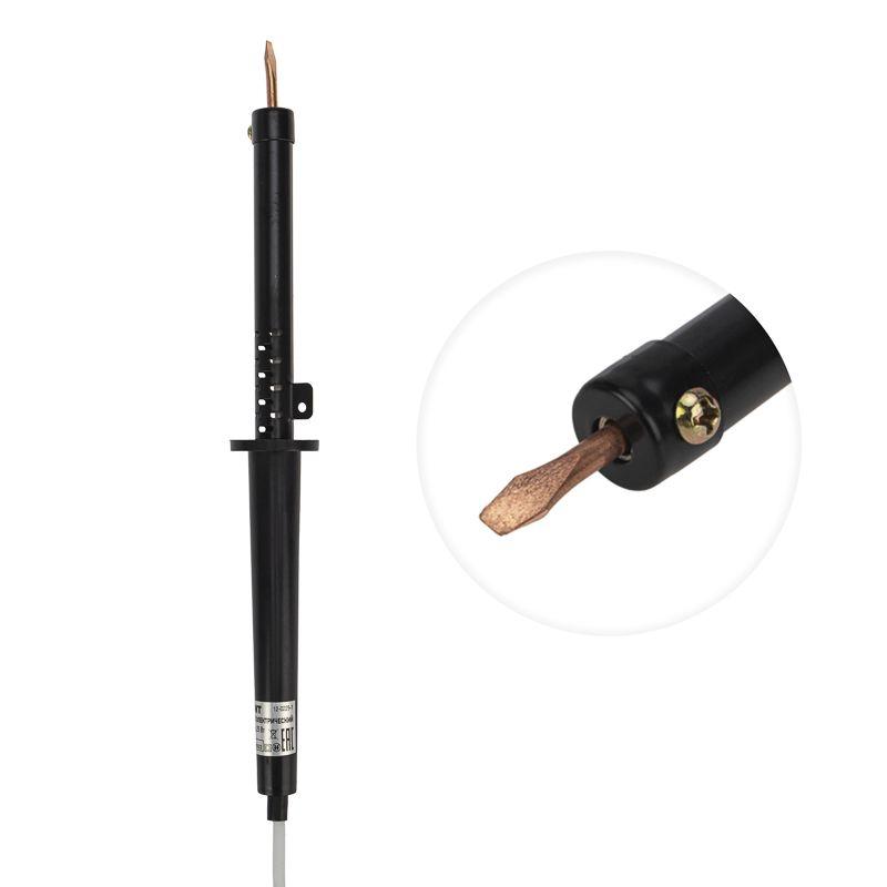 Паяльник с пластиковой ручкой серии ЭПСН мощностью 25Вт REXANT предназначен для ручного монтажа/демонтажа электронных компонентов и других мелких деталей. Подходит как для любительского, так и для профессионального использования. Медное жало выполнено в форме клина (лопатки), в случае необходимости его можно легко и быстро заменить (сменное жало в комплект не входит).