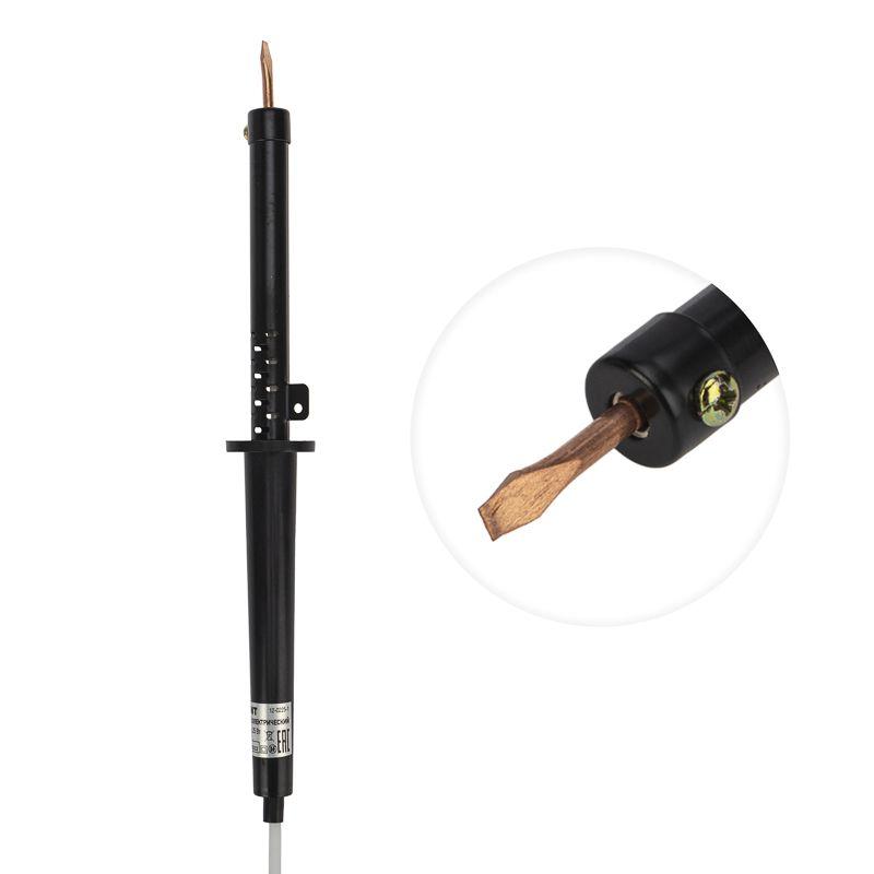 Паяльник с пластиковой ручкой серии ЭПСН мощностью 65Вт REXANT предназначен для ручного монтажа/демонтажа электронных компонентов и других деталей среднего размера. Подходит как для любительского, так и для профессионального использования. Медное жало выполнено в форме клина (лопатки), в случае необходимости его можно легко и быстро заменить (сменное жало в комплект не входит).