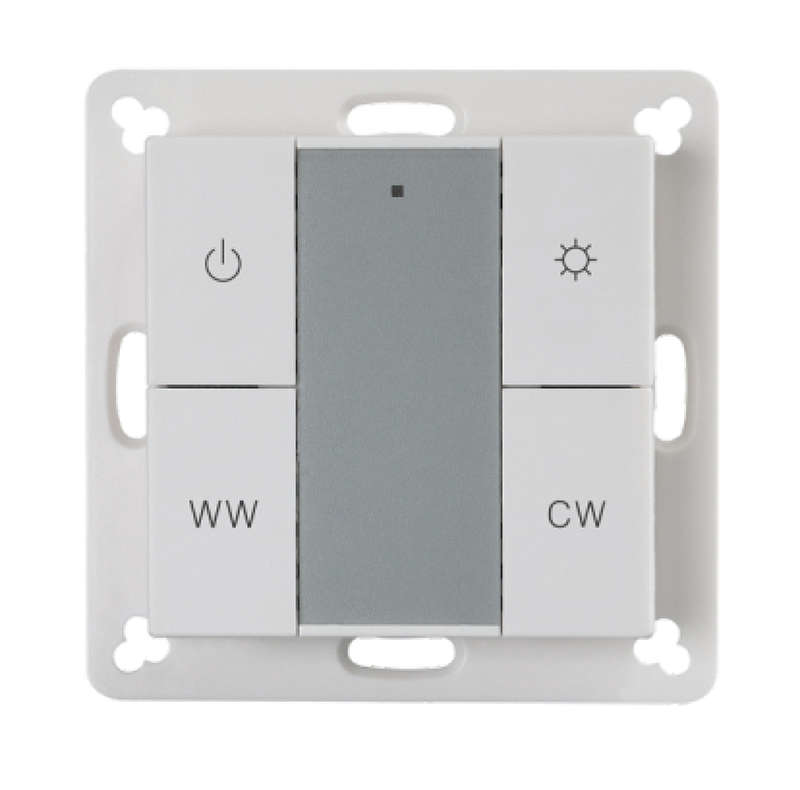 Кнопочные DALI панели позволяют выполнять ручное управление: включение, выключение, диммирование группами светильников. На стену в подрозеточную коробку Пластиковый корпус