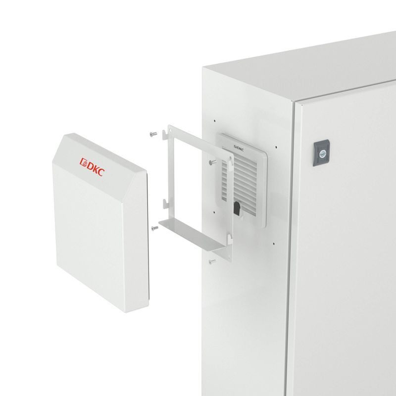 Защитные панели предназначены для повышения степени защиты вентиляторов и вентиляционных решеток до IP56, а также для обеспечения дополнительной вандалостойкости и защиты от механического воздействия. Устанавливаются поверх смонтированного на шкафу вентилятора или вентиляционной решетки. Панели имеют скрытую фиксацию внешнего кожуха при помощи винта, ограничивая свободный доступ к вентилятору или решетке. Панели могут применяться со всеми доступными сериями вентиляторов и решеток, которые имеют внешние габариты 250x250/252x252 мм (типоразмер 15). Фактические габаритные размеры панели: ширина 340 мм, высота 350 мм. Панели изготовлены из листовой окрашенной стали, цвет RAL7035.