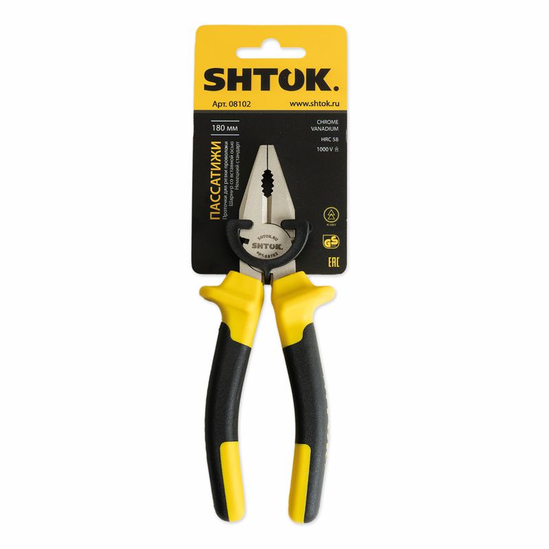 Диэлектрические пассатижи SHTOK 1000В 180 мм 08102 используются для выполнения работ под напряжением. Удобные рукоятки с упорами обеспечивают надежность захвата и удержания инструмента. Прочная рабочая часть инструмента выполнена из хром-ванадиевой стали.